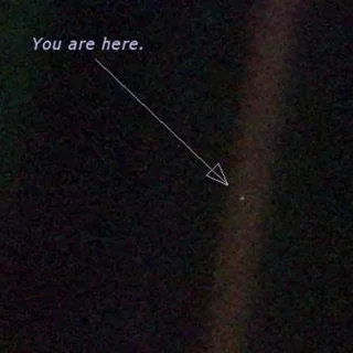 Pale Blue Dot is a photograph of Earth taken on February 14, 1990, by the Voyager 1 space probe from an unprecedented distance of over 6 billion kilometers (3.7 billion miles, 40.5 AU).(Wikipedia)